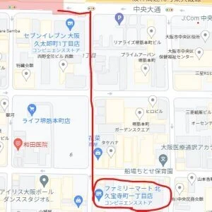 南へ300メートル進んでいただきファミリーマート北久宝寺一丁目店前